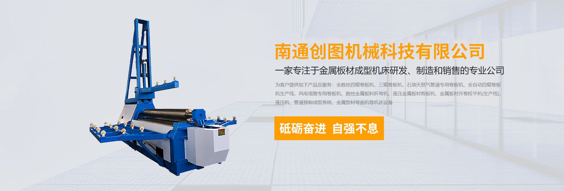 南通創(chuàng)圖機(jī)械科技有限公司坐落在長(zhǎng)江三角洲北翼--江蘇省南通市海安市,是一家專(zhuān)注于金屬板材成型機(jī)床研發(fā)、制造和銷(xiāo)售的專(zhuān)業(yè)公司,公司有著專(zhuān)業(yè)的設(shè)計(jì)、制造和銷(xiāo)售團(tuán)隊(duì)。南通創(chuàng)圖機(jī)械自成立至今,砥礪奮進(jìn),自強(qiáng)不息,努力為客戶(hù)提供如下產(chǎn)品及服務(wù):
